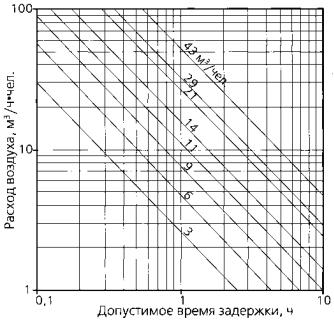 Пример - Расход воздуха - 30 м3/ч·чел.; объем помещения - 3,5 м3/чел.;